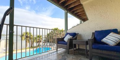 DIRECT Lagoon-Front hidden gem with spectacular, gorgeous views for UNDER $400,000! The secluded and private unit is tucked in the back overlooking Little Lagoon. Totally renovated initially as a "second home", and then eventually used as a vacation rental investment. No expense was spared on the inside or outside...newer windows, all new light fixtures and fans, new Speed Queen full-size w/d, new refrigerator, newly repainted, new plumbing and newly resurfaced pool. Plus, the kitchen has been totally remodeled with granite and custom cabinets that have drawers and pullout trash container, Travertine backsplash and walls, and the extended wall in the kitchen gives extra storage. Both baths have stand-alone vanities, guest bath with tub it tiled and has high-end glass doors, and the master suite opens up to the balcony and has stunning water views. This unit comes furnished! Storage downstairs is available and is just steps away from the beautiful outdoor pool overlooking the lagoon. Covered Double Parking also protects from the weather.