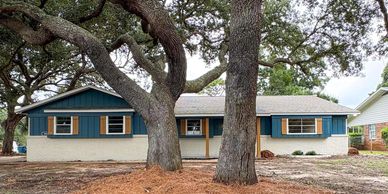 Newly updated Golf Course Home with pool and lanai Charming and move-in ready. Everything is new again...look for the yellow door! Split-floor plan...3 bedroom/2 bath. Beautiful oak trees highlight this home, brand new LVP flooring throughout, new fixtures, new vanity, new outlets, new fans toilets and wood-burning fireplace. One level living at its finest. New gold-fortified roof after Sally and extra-large laundry room.